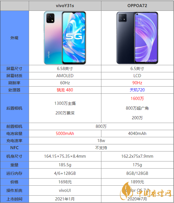 vivoY31s和OPPOA72哪個(gè)好?許多朋友對(duì)比這兩款手機(jī)都十分關(guān)注,那么vivoY31s和OPPOA72有什么區(qū)別?哪款手機(jī)更值得入手?接下來(lái)香煙網(wǎng)小編給大家?guī)?lái)vivoY31s和OPPOA72的參數(shù)對(duì)比,感興趣的朋友一起來(lái)看看吧!