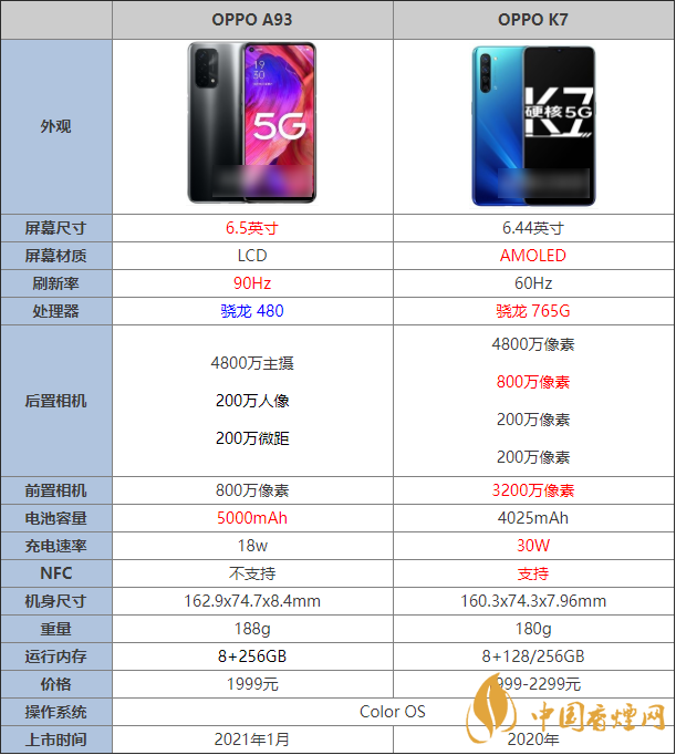OPPOA93和OPPOK7,兩款手機在同等價位上,那么這兩款手機有什么配置區(qū)別,哪個性價比更高更值得購買呢,接下來香煙網(wǎng)小編將對OPPOA93和OPPOK7參數(shù)對比進行介紹,感興趣的朋友一起來看看吧!