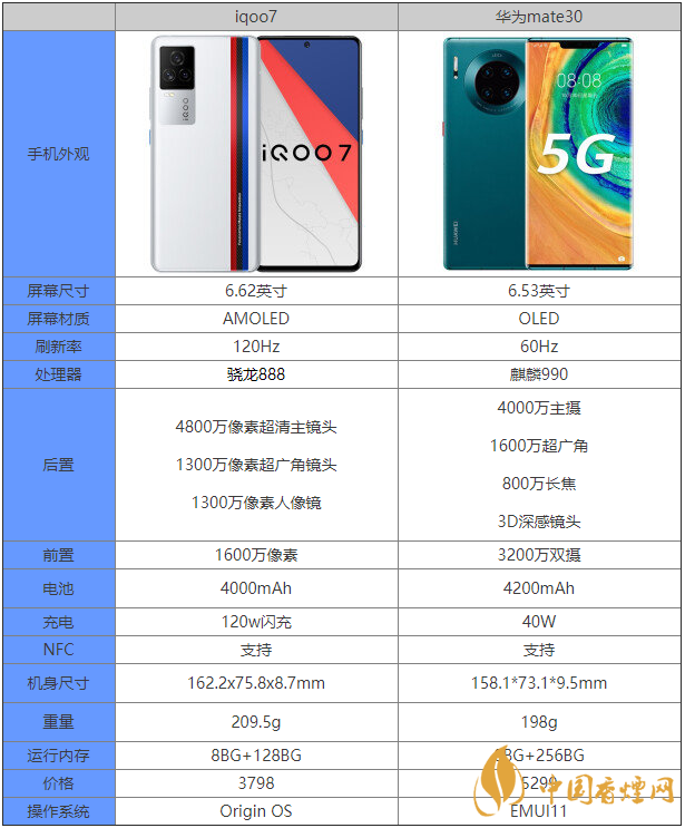 iqoo7作為近期剛發(fā)布的新款手機,許多朋友對這款手機都十分關(guān)注,那么iqoo7和華為mate30這兩款手機的區(qū)別是什么?哪款手機更值得入手?下面香煙網(wǎng)小編將對iqoo7和華為mate30參數(shù)對比進行介紹,感興趣的朋友一起來看看吧!