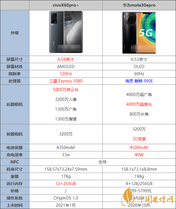 vivox60pro+和華為mate30epro有哪些區(qū)別?肯定會(huì)有朋友在糾結(jié),vivox60pro+和華為mate30epro這兩款手機(jī)選哪個(gè),哪個(gè)性價(jià)比更高更值得購(gòu)買,接下來(lái)香煙網(wǎng)小編就帶來(lái)了參數(shù)對(duì)比,一起來(lái)看看有什么區(qū)別吧!