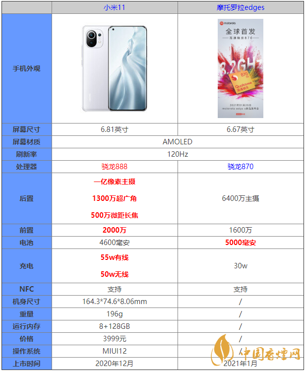 摩托羅拉edges是摩托羅拉即將發(fā)布的新款智能手機(jī),那么這款手機(jī)和小米11的區(qū)別是什么?哪款手機(jī)更值得入手?許多小伙伴對(duì)此都十分好奇,接下來(lái)香煙網(wǎng)小編為大家?guī)?lái)最新的摩托羅拉edges和小米11參數(shù)對(duì)比,快來(lái)看看吧。