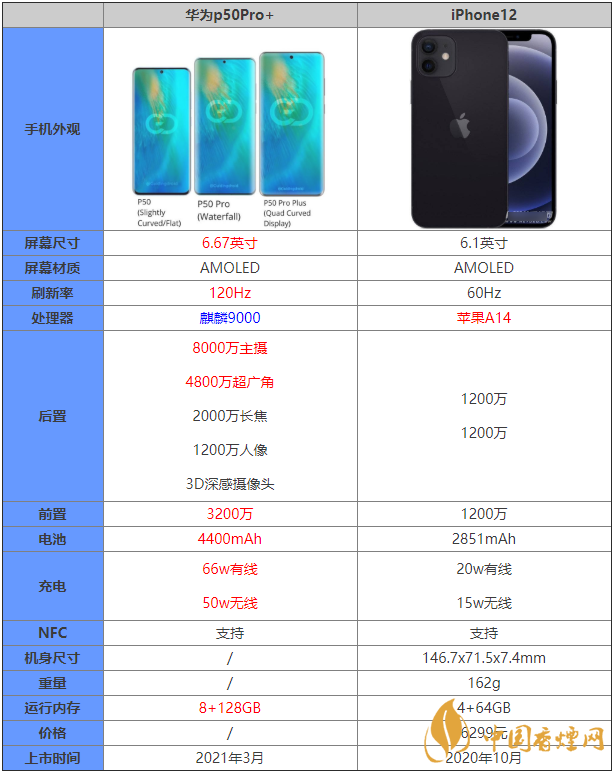 華為p50Pro+是華為將要發(fā)布的新一代旗艦手機(jī),許多朋友對(duì)這款手機(jī)都十分的關(guān)注,那么這款手機(jī)和iPhone12哪一個(gè)更好,哪款手機(jī)更值得入手?下面香煙網(wǎng)小編將為大家介紹華為p50Pro+和蘋果12參數(shù)對(duì)比,感興趣的朋友一起來看看吧