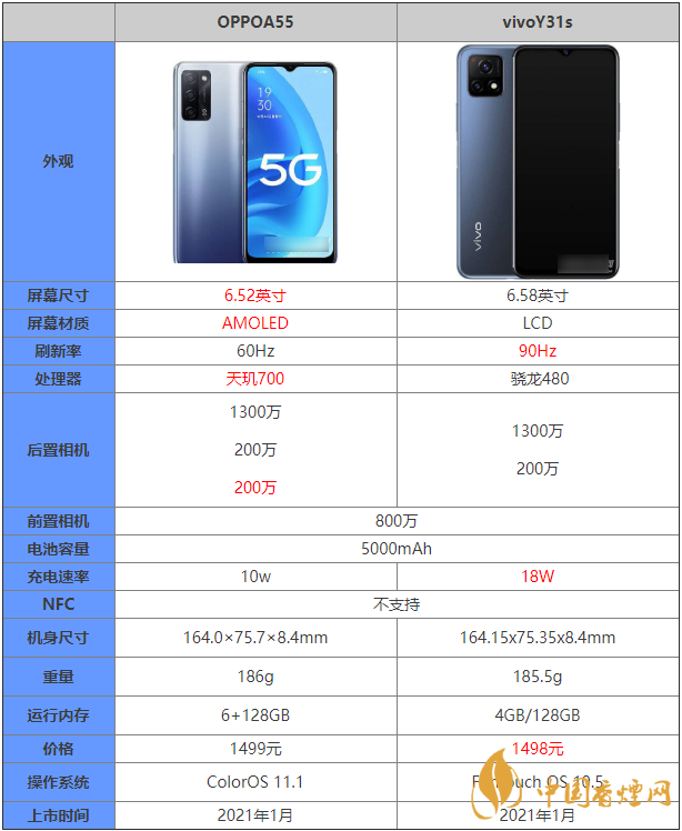今日,OPPOA55已經(jīng)發(fā)布,那么OPPOA55和vivoY31s這兩款手機(jī)有什么區(qū)別,哪款手機(jī)更值得入手?許多小伙伴都有這樣的疑問,接下來香煙網(wǎng)小編給大家?guī)鞳PPOA55和vivoY31s參數(shù)配置對比,感興趣的朋友一起來看看吧!