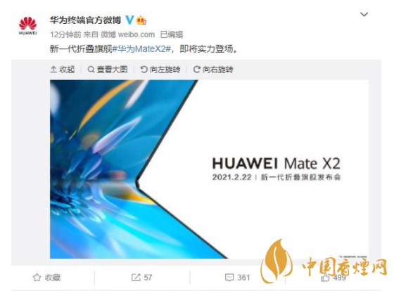 2月3日9點華為終端官方微博正式發(fā)布:新一代折疊旗艦華為MateX2,即將實力登場。根據官方的信息華為Mate X2將于2021年2月22日正式發(fā)布,不出意外華為Mate X2應該是傳統(tǒng)意義上新年第一機,因為那一天是正月十一。現(xiàn)在不得不佩服余承東的勇氣敢在春節(jié)之前公布華為Mate X2的發(fā)布日期,畢竟中間有一個春節(jié)七天長假這對于預熱機型是極為不利的。但華為就是華為向來不走尋常路,接下來估計官方會正式進入華為Mate X2的預熱周期。