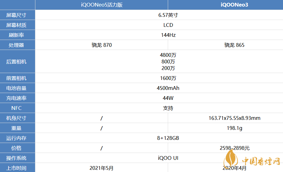 以上就是香煙網(wǎng)小編為大家?guī)?lái)的iQOONeo5活力版和iQOONeo3區(qū)別對(duì)比-參數(shù)配置相關(guān)資訊,以上資訊全來(lái)自網(wǎng)絡(luò),更多最新最實(shí)用的資訊請(qǐng)持續(xù)關(guān)注香煙網(wǎng)。