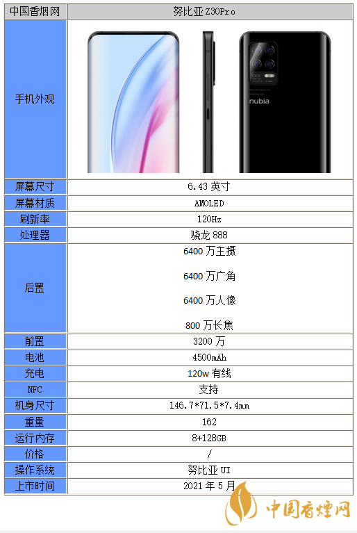以上就是小編收集到的努比亞z30Pro手機(jī)怎么樣-努比亞z30Pro參數(shù)配置一覽的相關(guān)內(nèi)容,以上內(nèi)容均來源于網(wǎng)絡(luò),僅供參考,一切以實(shí)際為準(zhǔn),更多最新數(shù)碼資訊請關(guān)注香煙網(wǎng)。