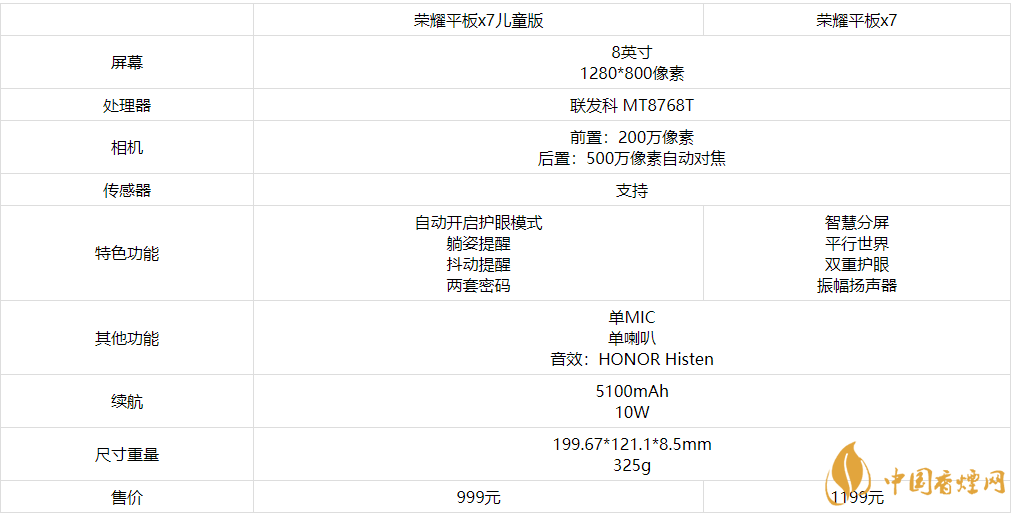 以上是小編整理的有關(guān)榮耀平板x7兒童版和普通版參數(shù)對比-哪個(gè)更好的信息,相信在座的朋友們聽到小編的介紹有所認(rèn)識,但是小編在這里提醒一句以上信息整合于網(wǎng)絡(luò),更多最新最實(shí)用的資訊請持續(xù)關(guān)注香煙網(wǎng)。