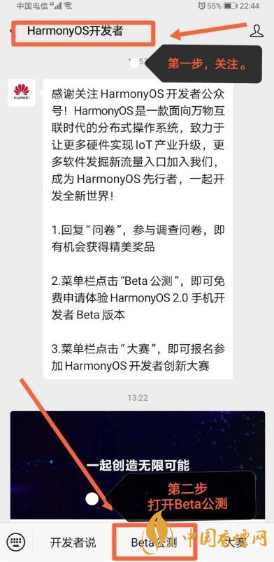另外一種比較簡單的方法就是微信申請鴻蒙公測資格。關注HarmonyOS開發(fā)者公眾號!菜單欄點擊“Beta公測”,即可免費申請體驗HarmonyOS 2.0 手機開發(fā)者Beta版本,等待審核通過了即可。