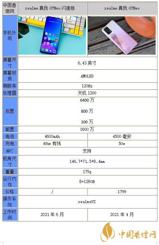 以上就是小編收集到的真我GTneo閃速版和真我GTneo有什么區(qū)別-參數(shù)對比分析的相關(guān)內(nèi)容,以上內(nèi)容均來源于網(wǎng)絡(luò),僅供參考,一切以實際為準(zhǔn),更多最新數(shù)碼資訊請關(guān)注香煙網(wǎng)。