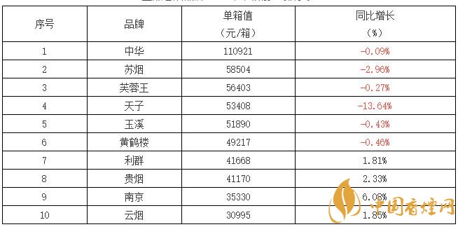 重點(diǎn)卷煙品牌2017年單箱前10排序表