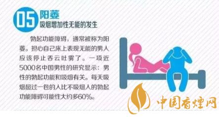 勃起功能障礙,通常被稱為陽萎。擔(dān)心自己床上表現(xiàn)無能的男人應(yīng)該停止香云吐霧了。一項(xiàng)近5000名中國男性的研究顯示:男性的勃起功能和吸煙有關(guān)。每天吸煙超過一包的人比不吸煙人的勃起功能障礙可能性大約多60%。想要了解更多內(nèi)容請點(diǎn)擊:吸煙的10個可怕事實(shí) 不能不知
