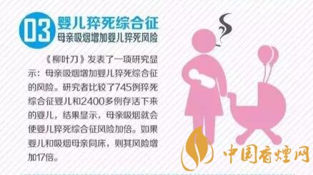 《柳葉刀》發(fā)表了一項(xiàng)研究顯示;母親吸煙增加?jì)雰衡谰C合征的風(fēng)險。研究者比較了745例猝死綜合征嬰兒和2400多例存活下來的嬰兒,結(jié)果顯示,母親級煙就會使嬰兒猝死綜合征風(fēng)險加倍。如果嬰兒和吸煙母親同床,則其風(fēng)險增加17倍。