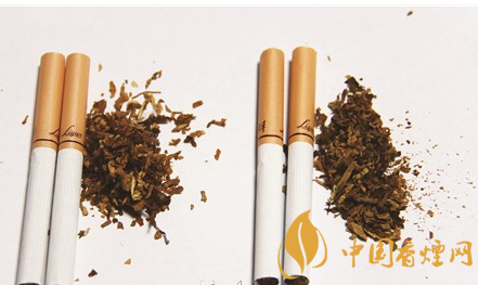 真煙煙絲切絲寬度均勻、顏色呈檸檬黃色,光澤油潤性好,且摻配有少量膨脹葉絲;假煙制絲工藝粗糙,顏色呈暗褐色,光澤油潤性差,一般無膨脹葉絲,且摻有未經(jīng)過膨脹處理的梗絲、碎末多,與真品特征存在明顯差異。