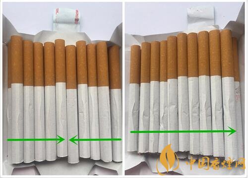 真品卷煙底部有兩個規(guī)則對稱的等腰三角形;假煙底部的兩個三角形不規(guī)則且不對稱。