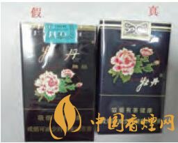 真品卷煙采用絨面印刷工藝,花形悉心勾勒,更顯質(zhì)感,圖案“牡丹花”更為寫實(shí)。假冒偽劣“牡丹(軟藍(lán))”多以舊版“牡丹花”造型進(jìn)行模仿,其圖案與真品存在明顯差異。