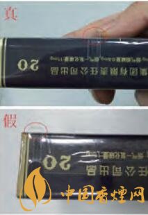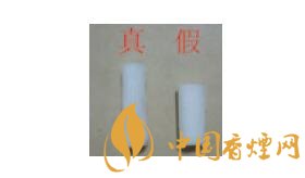 真品卷煙的拉帶設(shè)計(jì)在煙包中部,開啟口在煙包側(cè)面,平頭圓角;假冒偽劣產(chǎn)品拉線頭依然在煙包上側(cè)。