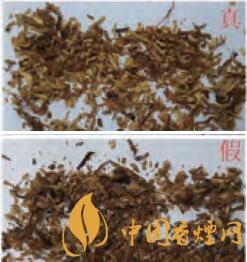 真品卷煙煙絲呈金黃色,煙絲彈性好,具有特殊氣味。假冒偽劣產(chǎn)品煙絲多為褐黃色,煙絲含末量大,且添加大量化學(xué)香料,味道刺鼻,存在明顯差異。