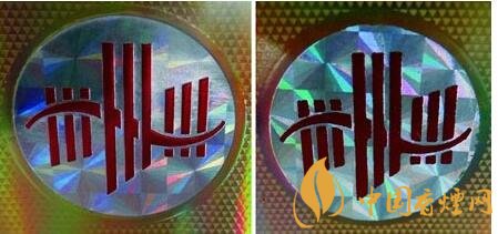 真品小盒正面商標(biāo)LOGO采用凹凸一次成型技術(shù),商標(biāo)圖案套色定位準(zhǔn)確無誤,成像效果層次分明,無脫漆掉色;假煙多采用高倍掃描儀仿印,印刷工藝粗糙,套色不準(zhǔn),邊緣有明顯脫漆掉色,與真品印刷工藝存在明顯差異。