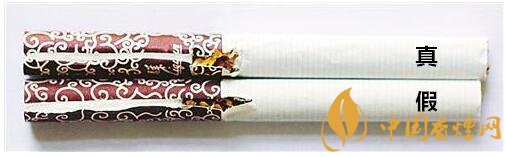 真煙采用機器燙封一次成型,封口較平整,拉線頭為規(guī)則的半橢圓形,右側(cè)垃圾桶圖示上方“方塊”筆畫較粗;假煙一般采用手工電烙鐵燙封,封口起皺較大,拉線頭形狀不規(guī)則,右側(cè)垃圾桶圖示上方“方塊”筆畫較細。