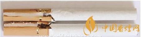 真煙煙支采用單一醋纖濾嘴,長(zhǎng)度為25mm,煙絲切絲寬度均勻,煙絲疏松、光澤油潤(rùn)性好、呈檸檬黃色、含碎末少,煙絲結(jié)構(gòu)為葉絲、膨脹葉絲、膨脹梗絲和再造煙葉;假煙煙支過(guò)濾嘴較短,長(zhǎng)度約為20mm,制絲工藝粗糙,色澤發(fā)暗無(wú)光澤、呈青褐色、煙絲中含碎末較多,大量梗絲未經(jīng)過(guò)膨脹處理,一般無(wú)膨脹葉絲和再造煙葉,與真品特征存在明顯差異。