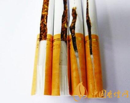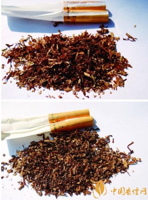 真品煙絲切絲寬度均勻一致,煙絲油潤性好,有彈性,顏色呈金黃色;假煙煙絲切絲工藝粗糙,寬窄不一,含大量劣質(zhì)煙梗片,煙末含量多,顏色呈褐色,與真品煙絲結(jié)構(gòu)存在明顯差異。
