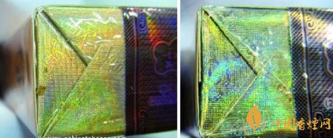 真品小盒商標紙采用專屬高端特供進口材質的紙張,適用于軟包硬化包裝工藝硬度材質,顏色以黃金色為主色;假煙小盒商標紙是普通材料,紙質低劣,比較薄、沒有硬度,顏色呈現(xiàn)出淡黃色,與真品顏色差異明顯。