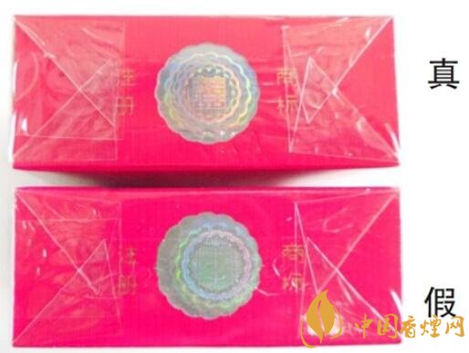 真煙表面光亮、圖案呈同心圓狀(“喜”字在圖案的中部);假煙一般印制錯(cuò)位(“喜”字不在激光全息圖的中部),反光暗淡。