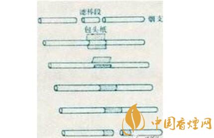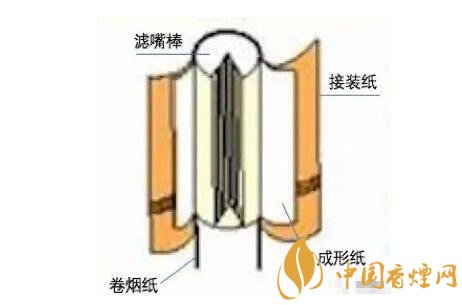 空腔濾嘴:空腔濾嘴是屬于二元復(fù)合濾嘴的一種,二元復(fù)合濾嘴通常是一段濾材為醋酸纖維,另一段為皺紋紙或生產(chǎn)過程中摻入添加劑(如活性炭)的醋酸纖維??涨粸V嘴是屬于后端為皺紋紙的那種,因?yàn)楹蠖藶橹锌眨瑸榱瞬皇蛊渌?,而醋酸纖維太軟,所以利用皺紋紙做成中空型。因其有一段規(guī)則的空腔, 形成一個(gè)低壓通道,抽吸時(shí)吸阻小, 能夠顯著提高對煙氣中焦油的過濾效率,有效地減少焦油和一氧化碳的釋放量。