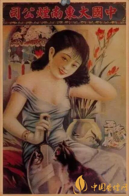 老虎牌香煙廣告是一個纖瘦美人正在吞云吐霧,背景就是香煙廣告語。