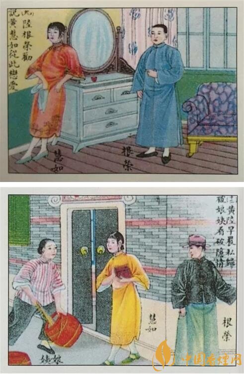 這套卷煙畫片根據(jù)1928年轟動全國的一起感情事件改編。黃慧如與陸根生的愛情故事是當(dāng)時轟動滬上的著名案件之一,各大報紙爭相報道,以之為題材的書籍、新劇、電影、評彈等數(shù)不勝數(shù)。卷煙廠商自然也不甘落后,爭先恐后出品了這一熱門題材的卷煙畫片,收效頗豐。同期,有些卷煙廠商還出品了“黃慧如”煙標。