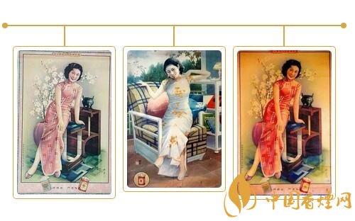 民國時期的香煙廣告,“美女”成為廣告畫中的絕對主角,使得廣告散發(fā)出誘人的女性魅力,以迎合和吸引大眾的注意力。而在當(dāng)時紅極一時的哈德門香煙,全國各大中城市的巨幅廣告牌比比皆是,觸目可及。為了促銷增收,除大張旗鼓地推出各類廣告外,還在每盒煙中配有畫片一枚,供欣賞收藏。畫面皆為摩登美女,印刷精美,色彩靚麗。畫片背面亦印有廣告詞“哈德門香煙人人愛吸”。據(jù)查,美女共有百名,這些活潑自信,燙發(fā),穿高跟鞋,旗袍高開叉的“香煙美女”,服飾發(fā)型和神態(tài)各有千秋,情態(tài)紛呈,不管是讀書、梳妝,還是玩樂,無一不讓人感受到美感帶來的視覺沖擊。一枚擁有,即思百枚。