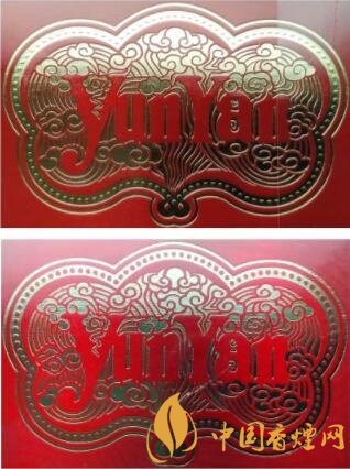 云煙(細(xì)支珍品)包裝采用中華傳統(tǒng)文化經(jīng)典的“朱砂紅”和“如意”作為設(shè)計元素,加以現(xiàn)代簡潔的線條設(shè)計,重新演繹了傳統(tǒng)文化精髓,卷煙依托云南上乘煙葉品質(zhì),傳遞自然香。最近市場查獲一批假冒卷煙,現(xiàn)將部分鑒別方法介紹如下:
