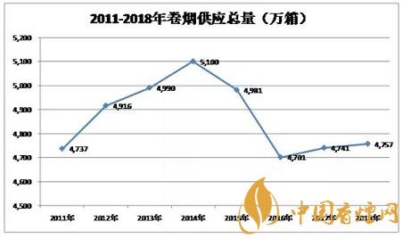 2018年,全國卷煙總銷量為4757萬箱,已經超過了2011年卷煙供應總量(4737萬箱)。但是,其中細支卷煙銷售203萬箱,按1/1.5粗細換算后,相當于行業(yè)向市場供應了4641萬箱常規(guī)卷煙。這就遠遠小于2011年的行業(yè)卷煙供應總量了。