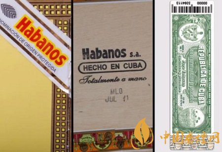 真正的包裝并不能保證里面的雪茄是真的,但是假的包裝能讓你快速便捷地辨別出是偽劣雪茄。在盒子的右上角可以找到哈伯納斯(Habanos )標簽,在左邊能找到古巴擔保印章(帶有全息圖和盒子代碼),盒子底部則印有日期、卷制手法、產(chǎn)地等信息。一些懶惰的偽造商出售的盒子會帶有標簽,但不是在外包裝上,而茄標多數(shù)會缺乏浮雕圖案,顏色和細節(jié)會和真貨存在細微的差別。