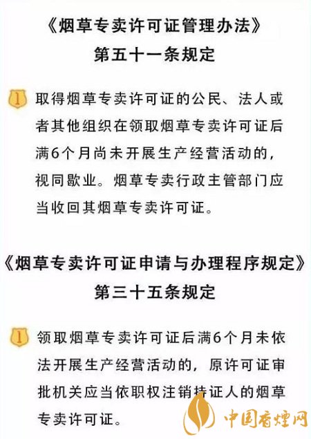 所以,新辦的煙草專賣零售許可證也是會(huì)“過期”的,老板們拿到了煙草證后,一定要在6個(gè)月內(nèi)訂購卷煙。如果因個(gè)人原因不能經(jīng)營卷煙,需向當(dāng)?shù)責(zé)煵菥旨皶r(shí)辦理歇業(yè)手續(xù),以免長期未經(jīng)營被注銷煙草證。
