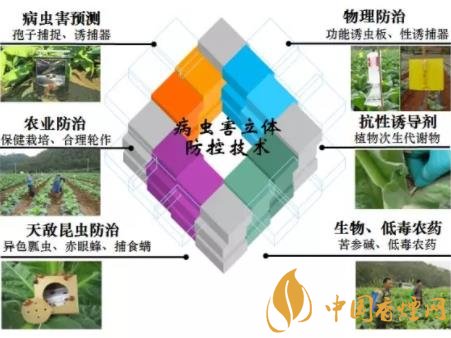 堅持“預(yù)防為主,綜合防治”的植保方針,積極組建植保專業(yè)隊,進行病蟲害專業(yè)化防治。生物防治、物理防治、化學(xué)防治多措施綜合并用原則,以GAP管理為載體,積極推廣煙蚜繭蜂生物防治煙蚜、性誘捕裝置、黃板等新型實用技術(shù)。重點防治煙草普通花葉病、青枯病、黑脛病、根黑腐病、野火病、赤星病、煙蚜、地老虎、煙青蟲、斜紋夜蛾等。
