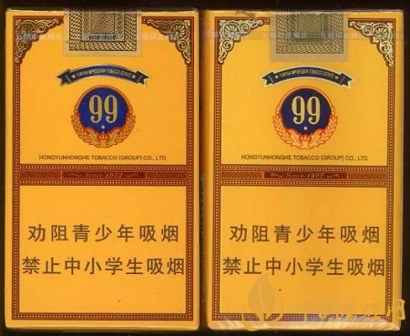 假煙:1.橫幅圖案邊框偏白色,底紋無網(wǎng)格狀。2.中間“99”圖案,色彩無明顯過度效果,整體偏黑色。