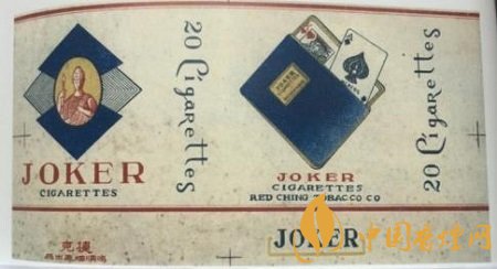 二十世紀(jì)四十年代,鴻順煙廠出品了“JOKER”卷煙,即“捷克”卷煙,此“捷克”非彼捷克(捷克斯洛伐克)。捷克煙標(biāo)只是“JOKER”的直譯音,而“JOKER”英意譯為“小丑”,也就是撲克牌中的百搭,大小怪,與捷克國(guó)家毫不相干。煙標(biāo)正版上橢圓形框,似覆在菱形花紋撲克牌的背面上,其內(nèi)為一個(gè)中世紀(jì)衛(wèi)士的肖像,并不是小丑的相貌。副版上畫有一個(gè)傾斜的藍(lán)色紙牌套子,套內(nèi)呼之欲出一些撲克牌,面上兩張分別是黑桃“A”和紅桃“K”牌面,即一副撲克牌中牌面點(diǎn)數(shù)的最大數(shù)和最小數(shù)。而在橋牌中,撲克牌“A”確是最大的。當(dāng)然,不同的撲克牌游戲,有其不同的游戲規(guī)則。鴻順煙廠設(shè)計(jì)“捷克”煙標(biāo),取百搭大小王及其這兩張牌面作為煙標(biāo)的主角,自有他的設(shè)計(jì)理念和商業(yè)用意,或許迎合當(dāng)時(shí)人們的喜好,或是市場(chǎng)競(jìng)爭(zhēng)的需要,在此,看者只能揣摩,不加定論。