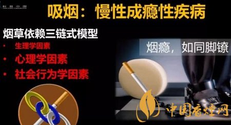 但是煙草成癮不是單單只有生理學(xué)因素,不然,中國就不會有3億吸煙者,不會十年吸煙率幾乎沒有變化。實際上,在戒煙的過程中,比克服生理學(xué)因素更難的是心理學(xué)因素和社會行為學(xué)因素。煙癮如同腳鐐,拴在人身上很難擺脫。