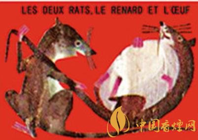法國著名煙草經(jīng)銷機(jī)構(gòu)塞塔公司推出過系列伊索和拉封丹寓言卡通火花,其中的“鼠火花”內(nèi)容詼諧,十分有趣?!峨p鼠、狐貍和雞蛋》(圖二)讓外界不要低估老鼠的智慧。狡猾的狐貍原本認(rèn)定老鼠搬不了雞蛋,不料兩個(gè)耗子狡黠協(xié)作,一個(gè)躺倒抱住雞蛋的同時(shí)直接讓伙伴拽拉著它的尾巴,彼此安然回洞!《老鼠和牡蠣》(圖三)是說被誘惑和貪婪的后果很嚴(yán)重:內(nèi)陸之鼠初到海邊,看到張殼做日光浴的牡蠣新奇不已,竟一頭伸進(jìn)殼中欲以秀色為餐,結(jié)果……即刻就要閉合的美艷景色不會(huì)免費(fèi)?。?/p>