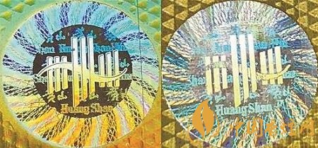 真品卷煙防偽標識采用激光全息防偽技術(shù),不同角度呈現(xiàn)的圖文線條清晰、立體感強。假冒卷煙防偽標識系偽造,變換角度呈現(xiàn)的圖文線條模糊、立體感不強。(左真右假)