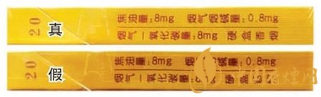 真煙鋼印為機器動態(tài)打印,整體鋼印較深且筆畫較細,每個鋼印間距不等,高低不平;假煙鋼印一般為手工靜態(tài)打印,整體鋼印較淺、較模糊。