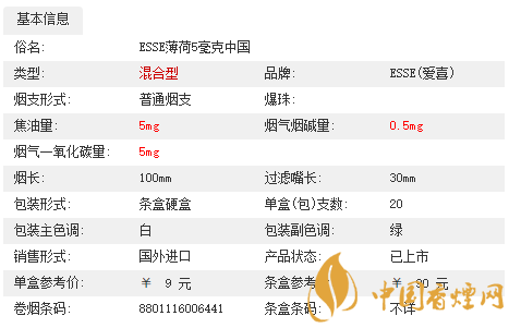 ESSE是韓國(guó)產(chǎn)的一種女式香煙,它的中文名為愛(ài)喜 。這個(gè)煙是韓國(guó)煙草人參公社出品,它的全稱為ESSE Menthol,也叫愛(ài)易,愛(ài)惜。它有粉色普通型、藍(lán)色特醇型和綠色薄荷型,是極有女人緣的韓國(guó)煙,薄荷味入口清涼,比較經(jīng)典的涼煙。