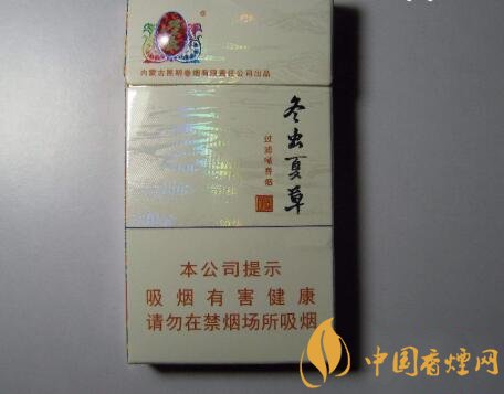 這款香煙對于大多數(shù)人來說還是比較陌生的,它屬于一款中草藥細支煙,由呼和浩特卷煙廠在2001年生產(chǎn)出來的。從外包裝上看設(shè)計比較簡潔,整個采用奶白色為主色調(diào),盒蓋左上角和背面右上角印有兩顆彩色蟲草抱著紅寶石鏡子的圖案,右邊書寫藍色冬蟲夏草漢子,警句用紅色字體。