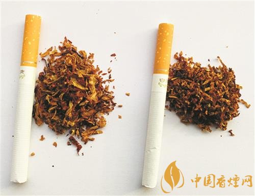 真煙煙絲疏松,光澤油潤(rùn)性好,呈檸檬黃色,含碎末少;假煙制絲工藝粗糙,色澤發(fā)暗無光澤,煙絲中含碎末較多。