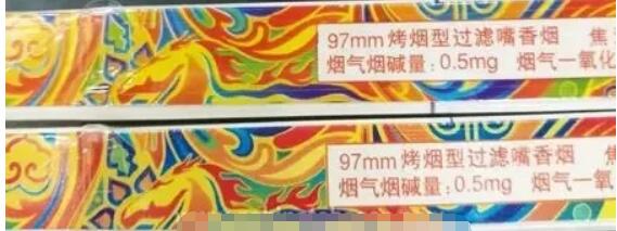 真煙藍(lán)色下邊是過渡的淡藍(lán)色,假煙無過渡色直接變成綠色。真煙中間為藍(lán)色,假煙全都是綠色。圖右側(cè)四個(gè)標(biāo)注處相同,真煙為藍(lán)色的三個(gè)圓珠,假煙為綠色的三個(gè)圓珠。