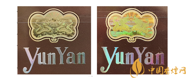 真品卷煙:“龍珠”圖案,呈現(xiàn)圓潤、飽滿、明亮圓珠狀,龍珠上方霞光萬丈;“雙龍”圖案,明亮清晰,龍鱗、龍爪清晰可見;云煙拼音筆畫圓潤飽滿。