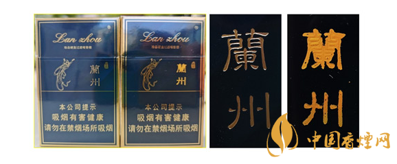 假冒卷煙:該款假冒卷煙“蘭州字體燙金工藝差,字體筆畫明顯有粘連,字體整體模糊。