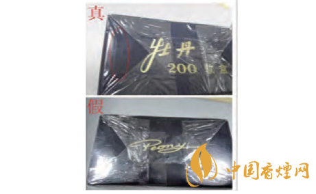 正面商標(biāo)紙差異對(duì)比:真品卷煙采用絨面印刷工藝,花形悉心勾勒,更顯質(zhì)感,圖案“牡丹花”更為寫實(shí)。假冒偽劣“牡丹(軟藍(lán))”多以舊版“牡丹花”造型進(jìn)行模仿,其圖案與真品存在明顯差異。