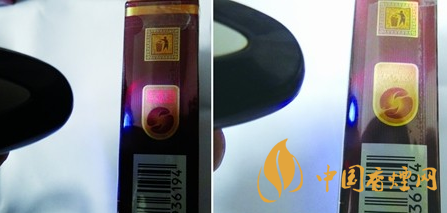 未采用熒光防偽技術(shù)時,觀察“防偽區(qū)”,真煙“防偽區(qū)”油墨厚,字體清晰;假煙反之。